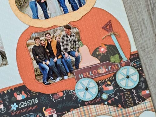 Cut out the pumpkins and gourds from your title sheet and group them together—or fill your wagon for a cozy, harvest-inspired scene.