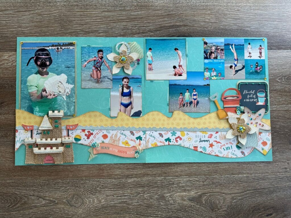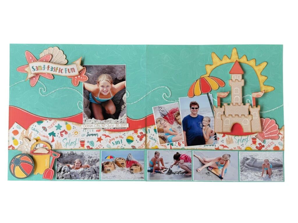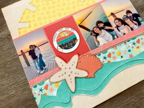 Incorporate textures into your next coastal layout using ribbon or even sand along the edges of embellishments. You can even add other textured looks like twine, burlap, or vellum. For more ideas, download the idea book that comes with this kit!