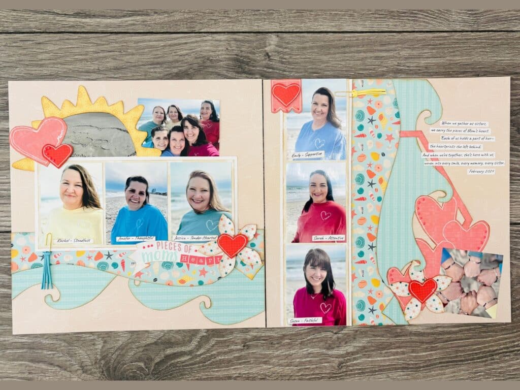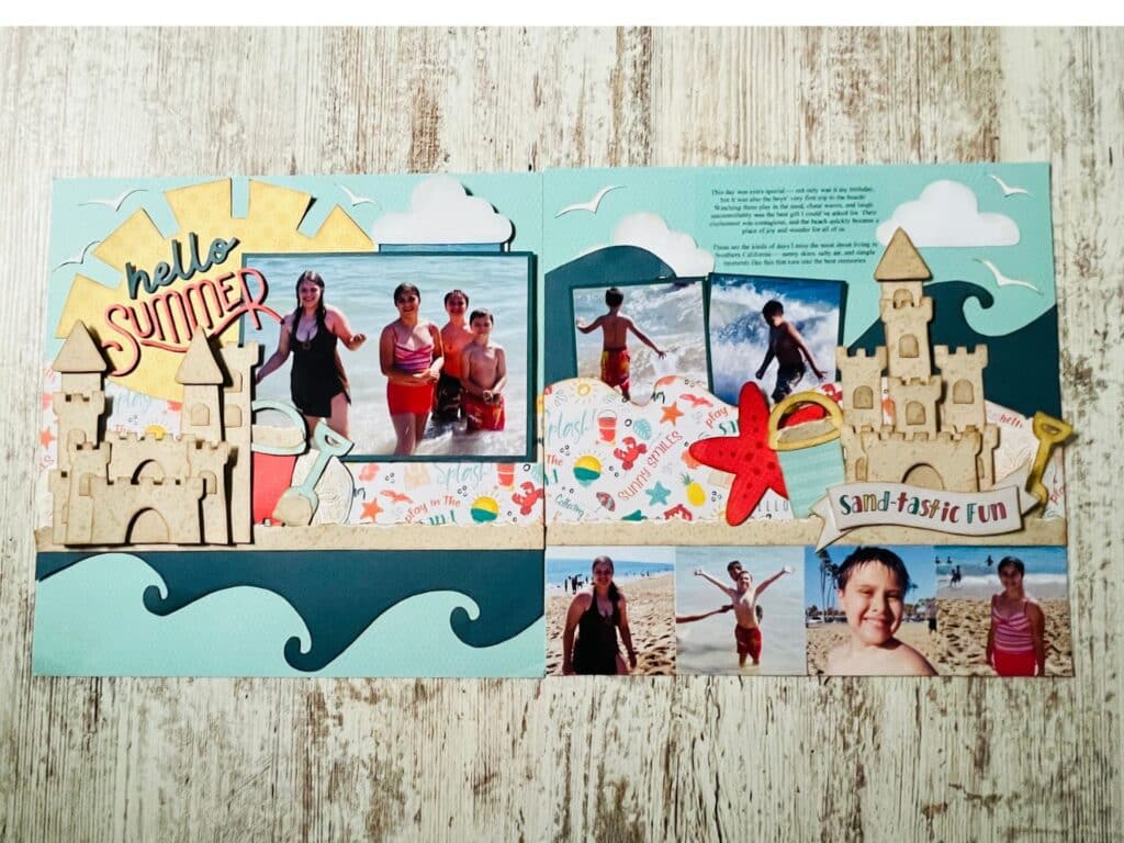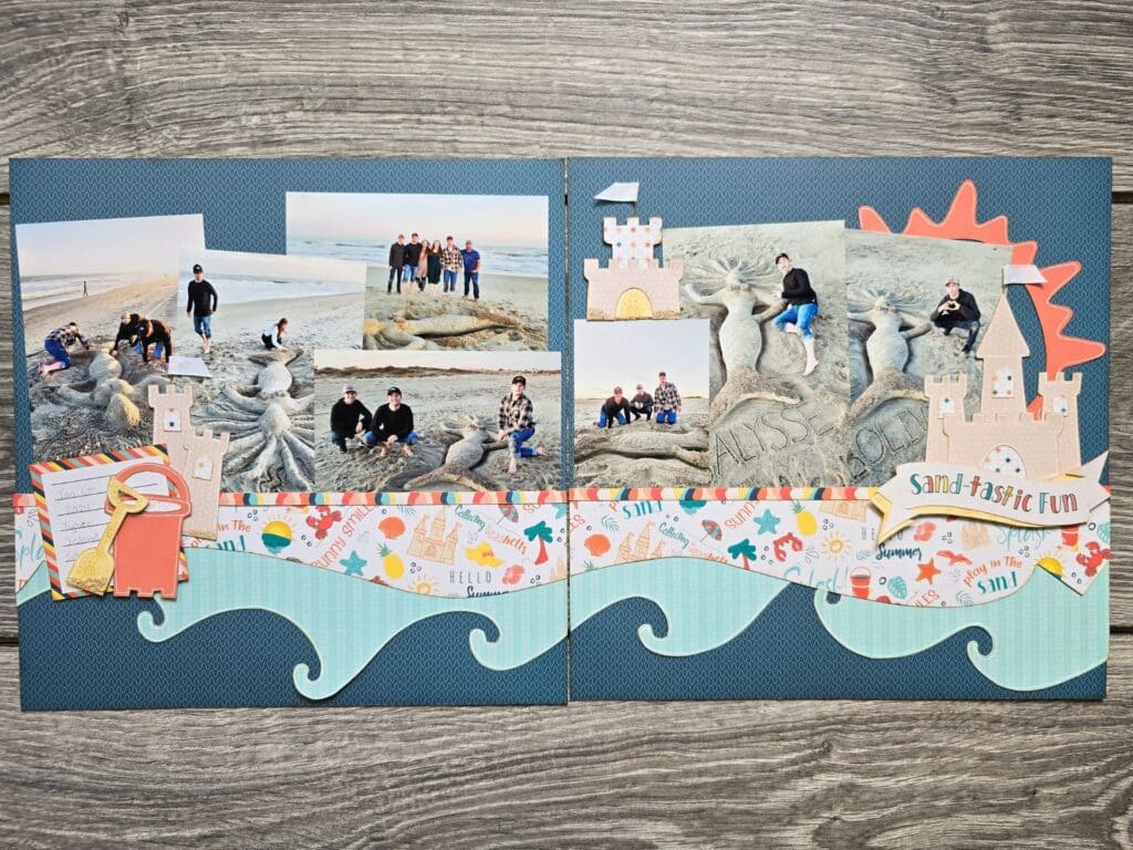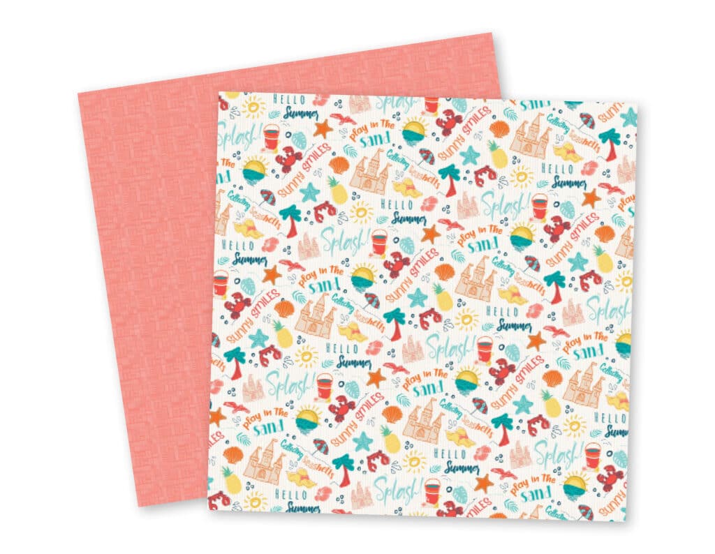 The Shoreline Treasures paper kit captures the joy of summer with 12 vibrant 12″x12″ cardstocks and 6 title cards featuring coastal designs and bright seasonal colors. Perfect for documenting beach trips, family fun, and tropical escapes, its playful patterns of sandcastles, seashells, and tropical flowers create lively backdrops for summer memories. Title cards include cheerful sayings like “The beach is my happy place” and “Everything is fine when there’s sunshine.”