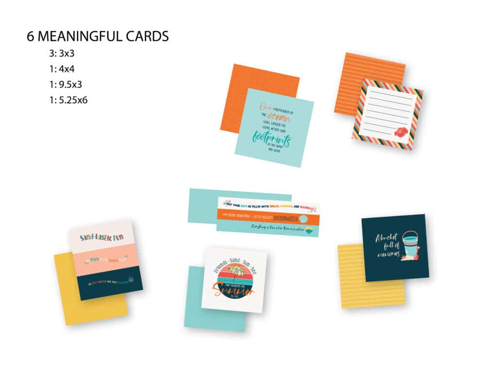 The Shoreline Treasures paper kit makes creating your next layout a playful adventure. Its vibrant patterns spark new ideas and inspire you to mix in bits from your craft stash—like ribbon or twine —for layers full of depth and personality. Pair these papers with the title cards to effortlessly highlight your photos and capture the story of every sunny memory.
