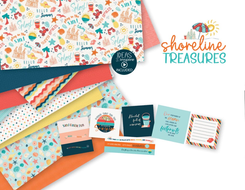 Capture summer memories with the Shoreline Treasures paper kit, featuring 12 coastal-inspired cardstocks and 6 title cards with bright, beachy designs perfect for family fun, seaside adventures, and tropical escapes.